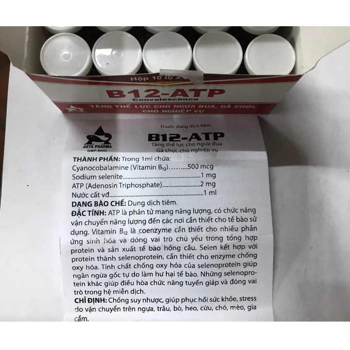 Thành phần: Vitamin B12 (Cyanocobalamine), Sodium selenite, Adenosin Triphosphate (ATP)