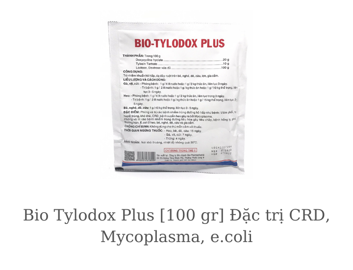 Bio Tylodox Plus [100 gr] Gà đá Đặc t.rị CRD, Mycoplasma, e.coli
