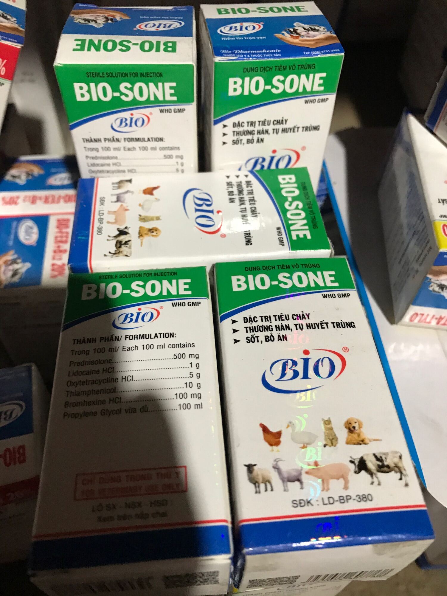 Biosone [20ml] tiêu chảy, thương hàn, tụ huyết trùng, sốt bỏ ăn cho chó mèo gà đá gia súc gia cầm Hướng dẫn sử dụng cụ thể xem trên vỏ chai. Tránh ánh nắng trực tiếp, bảo quản nơi khô mát
