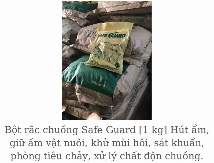 Bột rắc chuồng Safe Guard [1 kg] Hút ẩm, giữ ấm vật nuôi, khử mùi hôi, sát khuẩn, phòng tiêu chảy, xử lý chất độn chuồng