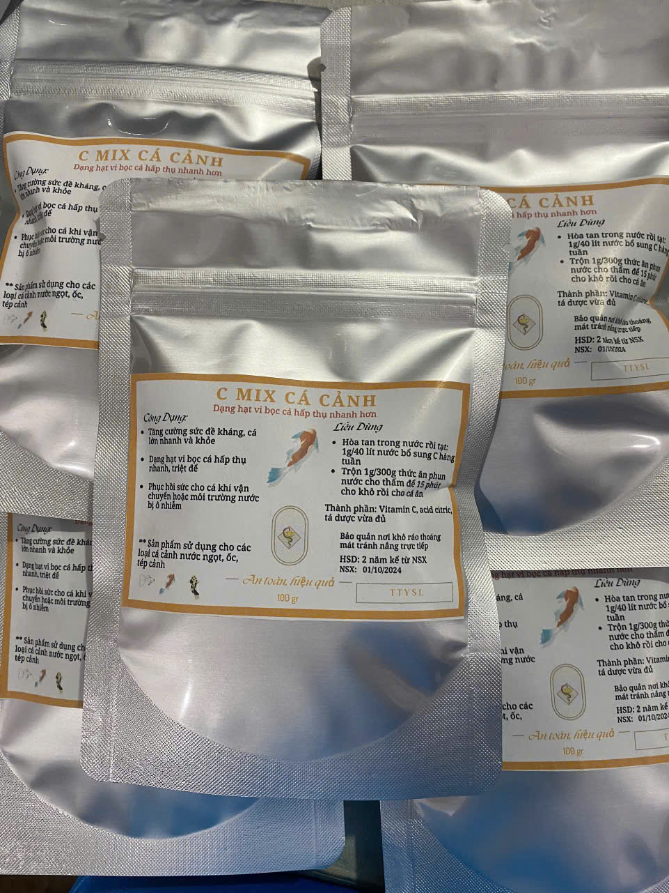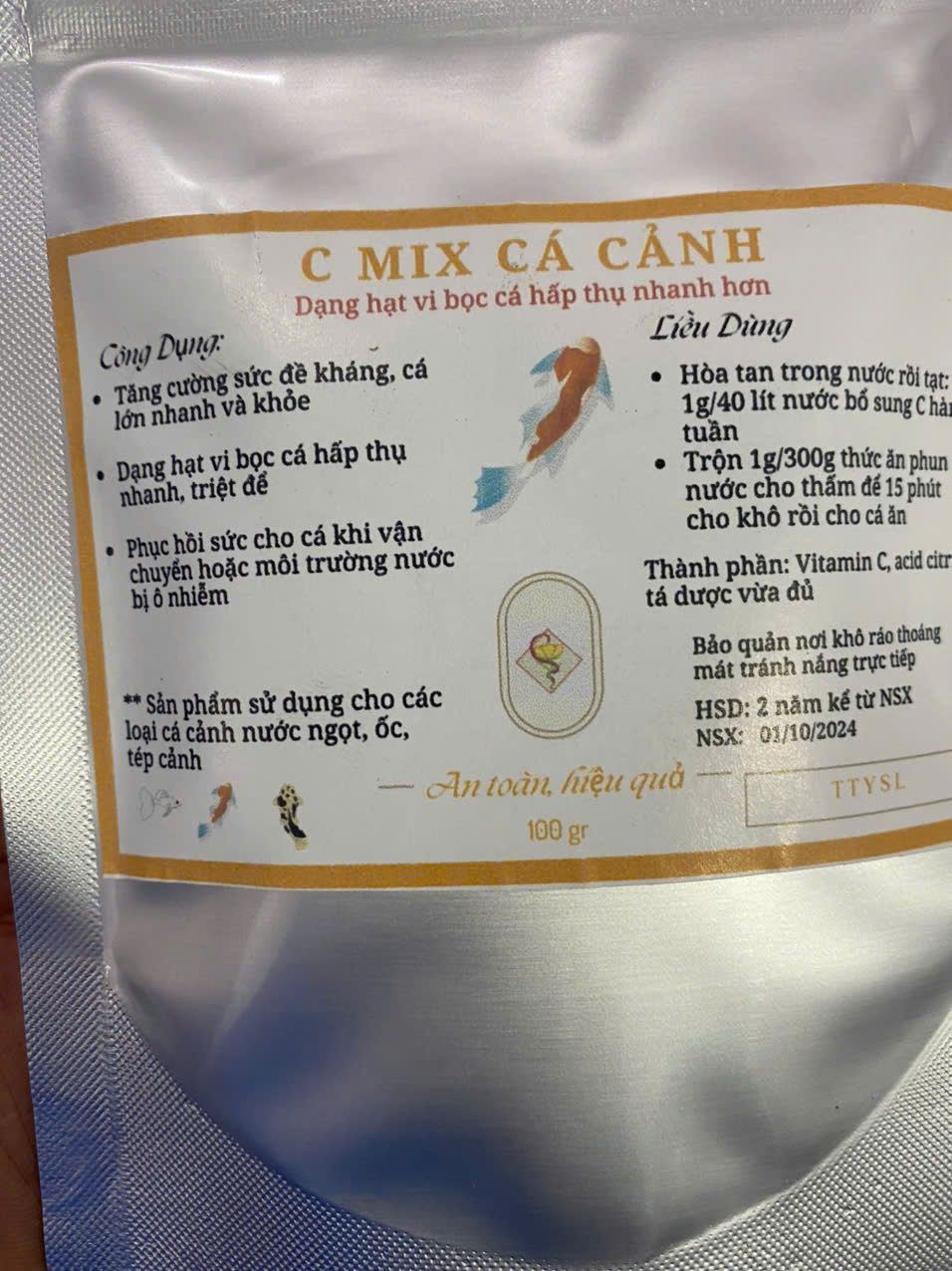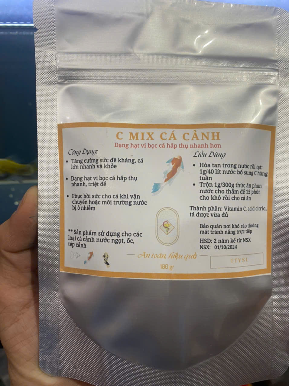 Vitamin C mix cho cá cảnh cá chép, guppy, betta, koi, lóc kiểng, ốc gói