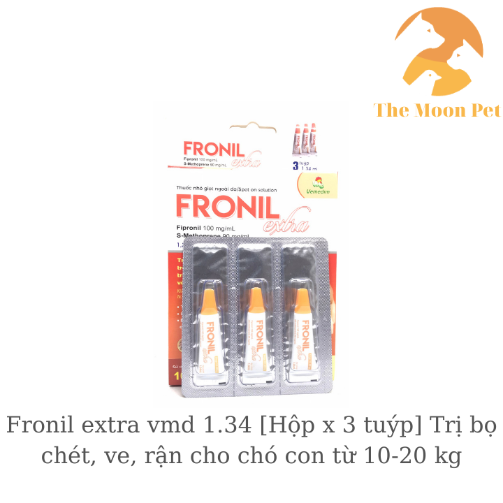 Fronil extra vmd 1.34 [Hộp x 3 tuýp] T.rị bọ chét, ve, rận cho chó con từ 10-20 kg