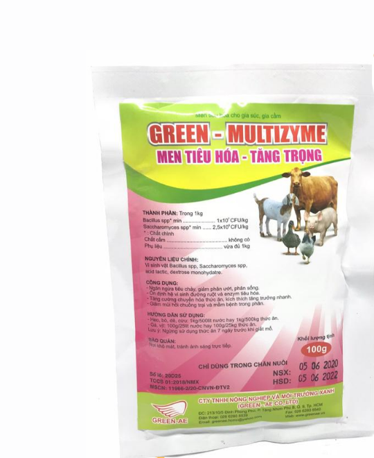 Green Multizyme [100 gr] Men tiêu hóa- tăng trọng cho gà, vịt, heo, bò, dê, cừu