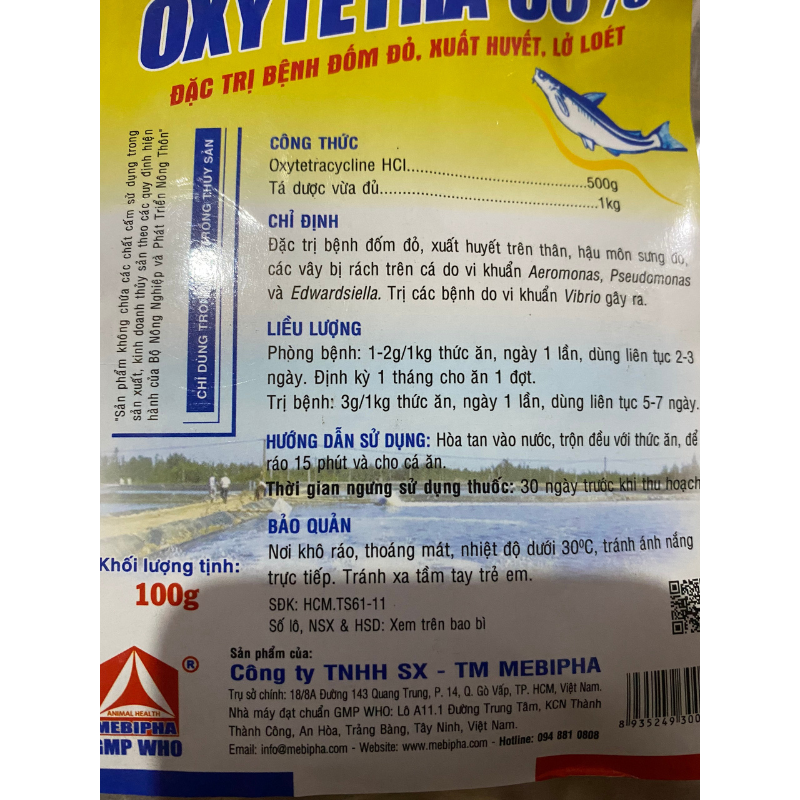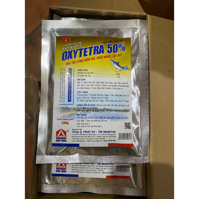 Oxytetra 50% mebi cá, thủy sản đóm đỏ, xuất huyết lỡ loét [100 gr]