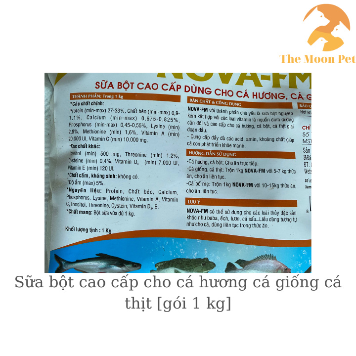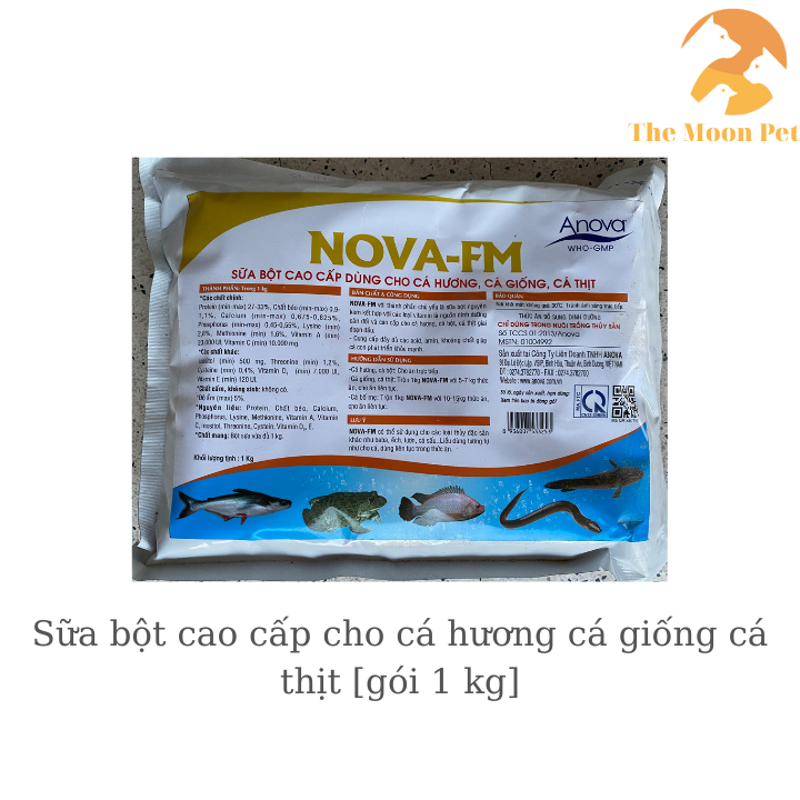 NOVA-FM với thành phần chủ yếu là sữa bột nguyên kem kết hợp với các loại vitamin là nguồn dinh dưỡng cân đối và cao cấp cho cá hương, cá bột, cá thịt giai đoạn đầu.