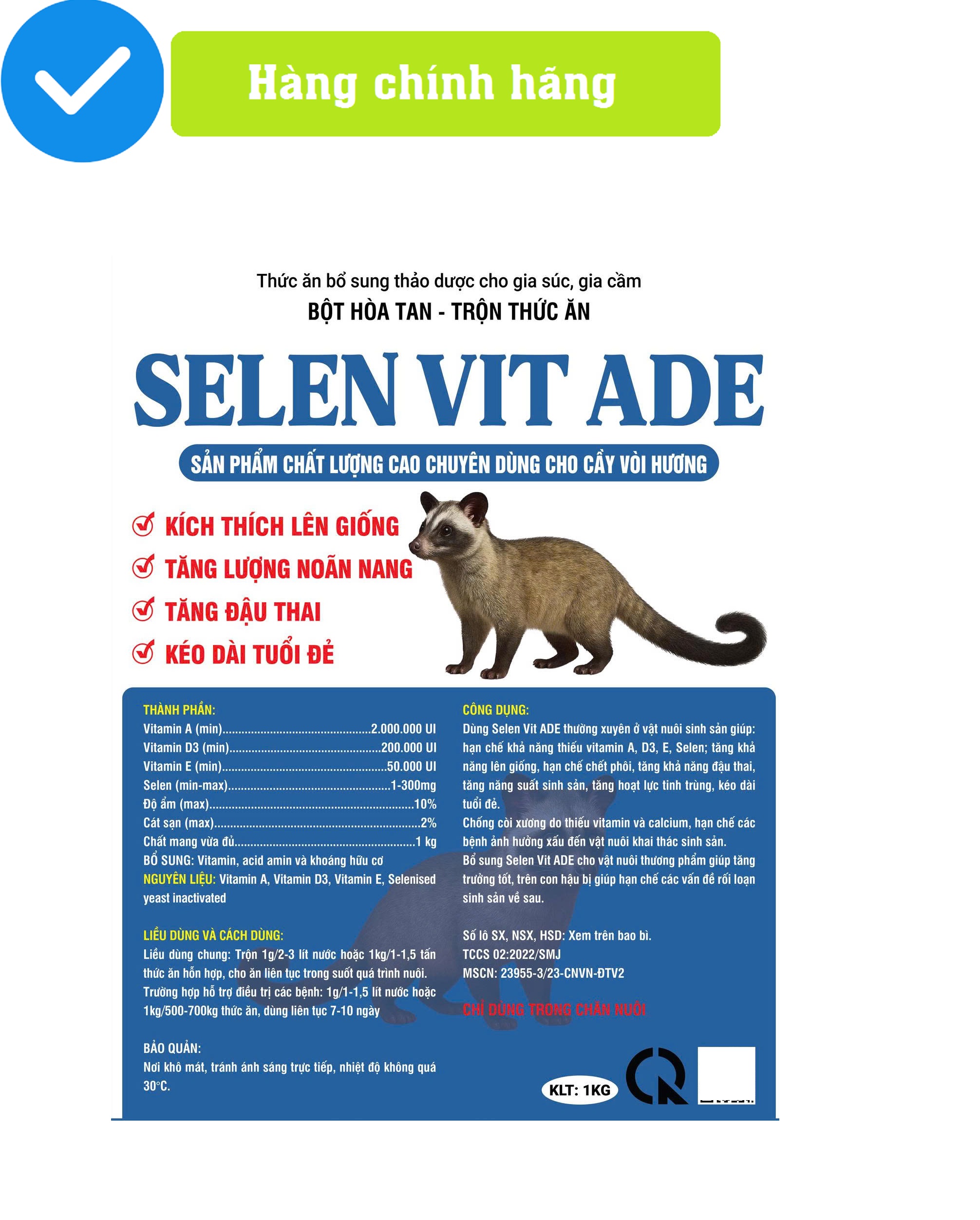 SELEN VIT ADE — Sản phẩm bổ sung dinh dưỡng chất lượng cao cho sức khỏe sinh sản Cầy vòi hương